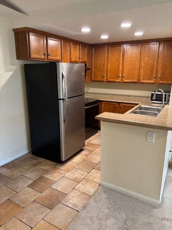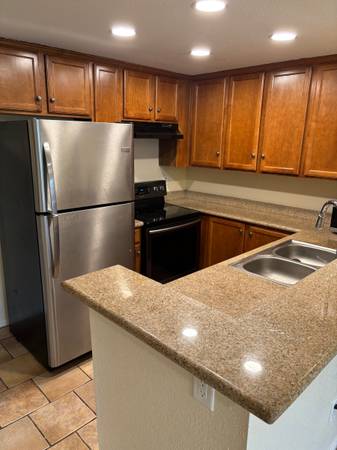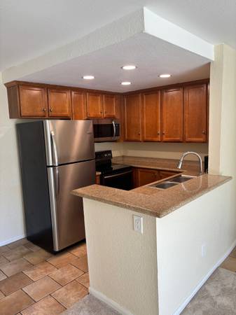 Arbor Hills Gated community. 3 miles from the beach. Pet friendly. New carpet and paint. Master bedroom has separate vanity area, air conditioner and heating,ceiling fan and walk in closet. Carport parking. 2 nd floor unit. Very quiet residential neighborhood. Balcony overlooking a park like area of grass, trees and a barbecue. Relaxing hot tub and pool. Onsite laundry facilities.