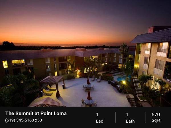 A truly unique apartment community situated on the bluffs overlooking beautiful, coastal Point Loma. Set in a prime location offering easy access to downtown San Diego, the airport, major shopping facilities, Mission Valley, beautiful beaches and military installations. The Summit at Point Loma offers its residents a rare level of luxury and convenience at our Point Loma San Diego apartments.