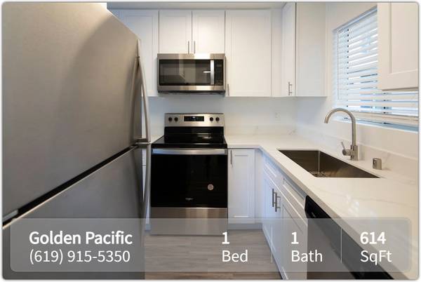 Perfectly situated, Golden Pacific puts you just minutes away from the beauty of Balboa Park, the excitement of Downtown, theaters, shopping, and more. With easy access to I-5, I-163, and Freeway 94, commuting is a breeze. Call us today and let us help you find your perfect new home!