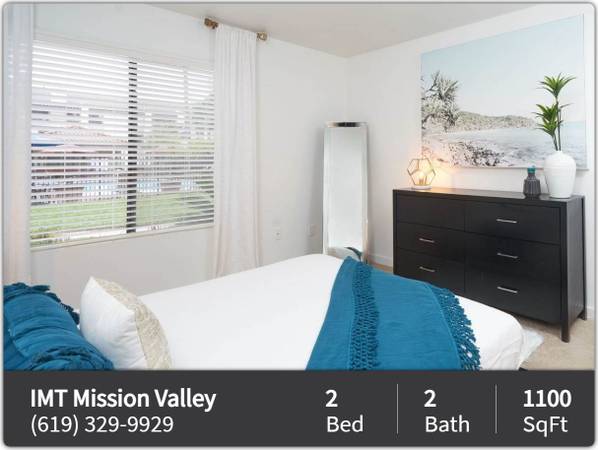 Description: IMT Mission Valley residents can lounge around and cool off at the two pools & one spa, stay active at the fitness center, yoga studio & racquetball court, grill some sizzling good eats at the three barbecue areas and enjoy many more conveniences within the community. Explore more of what makes our community so special.