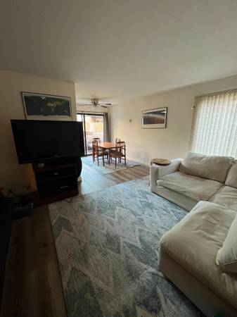 One bedroom/one bath for rent. Furnished, on 3rd floor, one parking spot in parking garage, has elevator, pool, BBQ area on the board walk. One month rent as deposit.