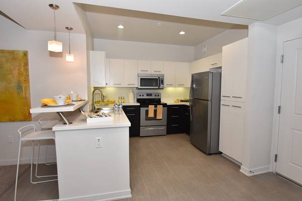 Interior residence features include quartz countertops, luxury vinyl plank flooring, and spacious, walk-in closets. Other features include a large washer and dryer, an ample amount of storage, and balcony spaces perfect for entertaining. Pets are welcomed in select homes.