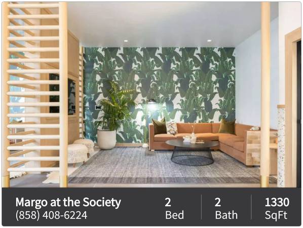 Look forward to exceptional California living at Margo at the Society. With a desirable location in Mission Valley San Diego, residents have access to vibrant neighborhood offerings. Spend your days exploring eclectic eateries, relaxing at scenic parks like Old Trolley Bark Park, or shopping until you drop at Fashion Valley Mall. After enjoying a day on the town, retreat to a sense of comfort and calm at Margo at the Society. Reach out today to learn more about life in this desirable area.