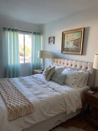 huge discount‼️ Normally $4100 a month… want early booking. Close to the bay, beach, Downtown! La Jolla (one exit away), Sea World, Old Town and Downtown Gas Lamp District just minutes away. Huge windows in living room, balcony. Flatscreen smart T.V.'s in every room. Wifi, cable/DVR, gorgeous kitchen w/granite bar.. Swimming pool, huge jacuzzi. BBQ’s and decks (common areas), Newly remodeled, beautiful furnishings. Comfy brand new beds! (Queen beds)… Walk to restaurants/bars, sushi bar, brewery, liquor store and vegetable/fruit stand… all just around the corner.
