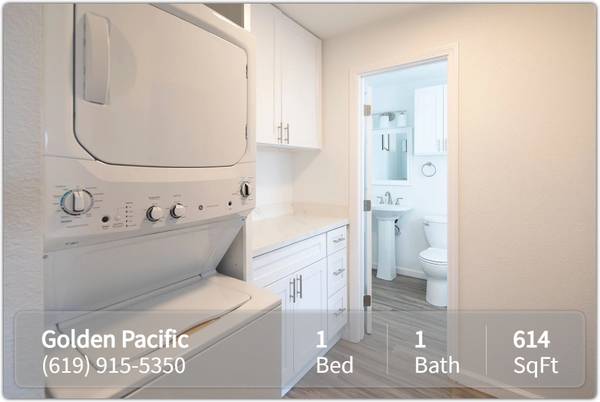 Perfectly situated, Golden Pacific puts you just minutes away from the beauty of Balboa Park, the excitement of Downtown, theaters, shopping, and more. With easy access to I-5, I-163, and Freeway 94, commuting is a breeze. Call us today and let us help you find your perfect new home!