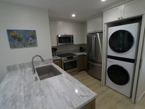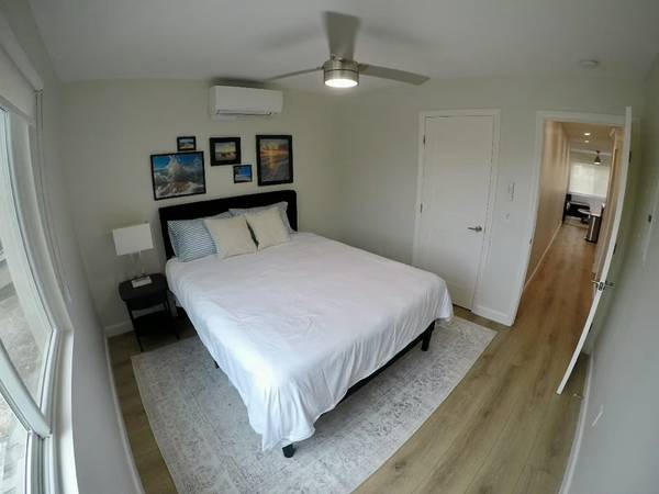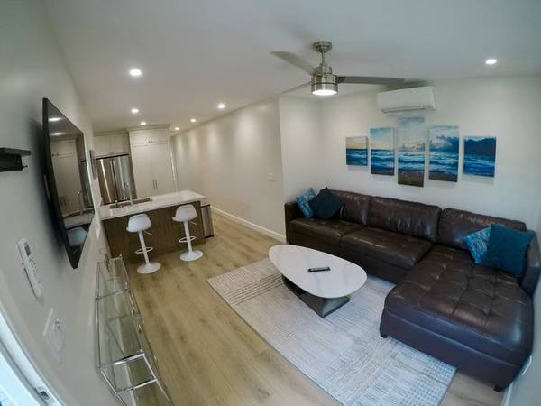 BRAND NEW 2bd/1ba Condo: Be the first tenant in this newly built apartment! LIVING AREA: Enter through your own private staircase into a spacious living room with a south-facing window. Luxury vinyl plank flooring throughout and extra sound/fireproofing ensure peaceful living. KITCHEN: Brand new appliances include an oven, microwave, refrigerator, dishwasher, and washer/dryer combo. The kitchen features a large composite sink, Matterhorn quartz countertops, and a peninsula with bar stools. BATHROOM: Includes a large vanity with extra storage, beautifully tiled shower, and a deep soak tub. BEDROOMS: Two large bedrooms sliding door closets. UTILITIES: All utilities included. OUTDOOR SHOWER: Fully stocked outdoor shower for a rinse-off after the beach. OTHER AMENITIES: Fully furnished, heating and AC, private gated front. Lease: 1 month min