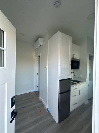 The living area is designed for efficiency, featuring a combined space for sleeping and lounging. The bathroom is equipped with standard fixtures. Residents will benefit from gated access, enhancing security and privacy. The exterior of the building is well-maintained, contributing to a pleasant environment. The rental price is competitive for the area, making it an attractive option for those seeking affordable living.