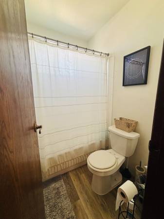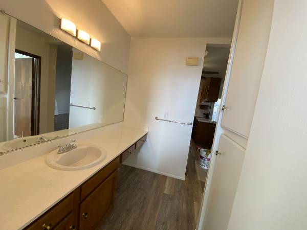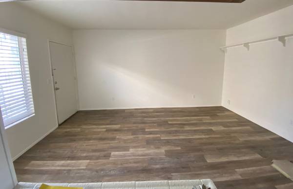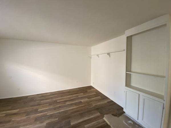 As you enter the living room you will find warm modern paint colors and plank flooring. The living room is spacious and allows for full size furniture. There are built ins for books, décor or more.