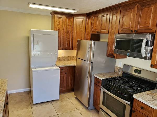 Kitchen has Stainless Steel Appliances - Gas Stove, Microwave, Fridge, Dishwasher. Washer and Dryer are included!! Granite counter tops, crown molding around cabinets, Under cabinet lights on dimmer, Undermount Double Sink with pull out faucet and garbage disposal.