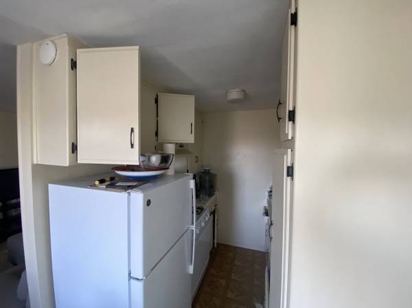 The bedroom offers a large wardrobe closet and can accommodate a queen size bed. There is also an additional linen closet for extra storage. The bathroom has a full tub/shower.