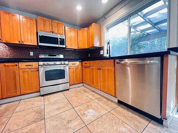 Located in the desirable Mira Mesa neighborhood, this updated 2-bedroom, 2-bathroom home features 1,008 sq. ft. of comfortable living space with modern amenities. Highlights include a contemporary kitchen with stainless steel appliances, renovated bathrooms, central heating and air conditioning, and an outdoor area with a redwood deck and private putting green. The property offers ample parking with a 2-car garage and space for RVs. Energy-efficient elements like LED lighting and bamboo flooring enhance its eco-friendly appeal. Conveniently located near shopping, parks, and schools, it provides easy access to major highways. Appliances included: washer, dryer, A/C, refrigerator, range, microwave, and garage door opener. Applicants must complete a Rescreening Profile.