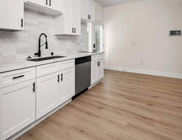 The renovated interior features modern amenities such as tile backsplash, quartz counters, vaulted ceilings, and in-home air conditioning for ultimate comfort. Residents can enjoy the convenience of in-unit washer/dryers, stainless steel appliances, and hard flooring throughout.