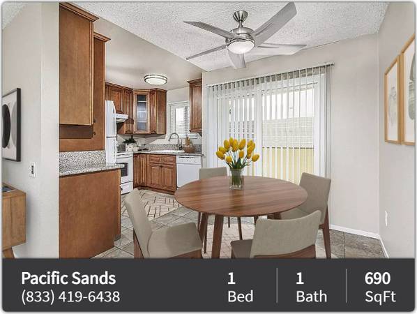 Welcome to Pacific Sands! Experience condo-quality apartment homes in the Clairemont neighborhood of San Diego. Located steps from the beach and Genesee Plaza and with easy access to UTC, Pacific Beach, and downtown San Diego, you are close to everywhere you want to be. Our spacious, open floor plans have a modern look and high-end finishes. As a resident, you'll enjoy our resort-style pool, outdoor lounge, gas BBQ, and brand-new fitness center. It's easy to see why Pacific Sands is a highly sought-after community. Please find out more and let us help you find your new home!