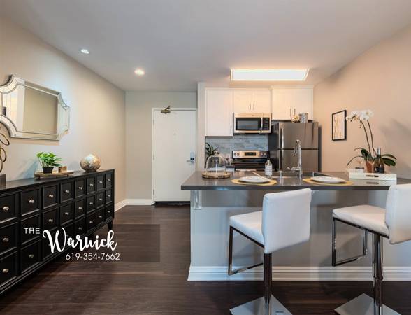 The Warwick! Experience upscale living in the vibrant Hillcrest neighborhood of San Diego at The Warwick. This modern urban community offers a variety of spacious studio, 1, and 2-bedroom apartments featuring designer interiors and curated amenities. Enjoy the convenience of fiber-ready ultrafast internet, garage parking, and fully updated kitchens with stainless appliances, quartz counters, and marble backsplashes. Residents can unwind in resort-style surroundings that include a pool, private cabanas, and a stylish social lounge.