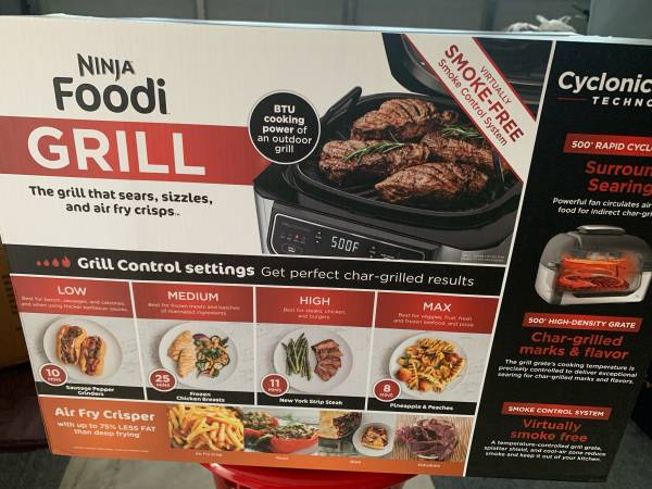 Ninja Foodi /Grill Fryer , item is brand new. Never taken out of box . Paid $200.00 at Macy’s .