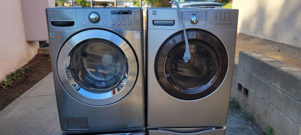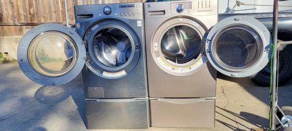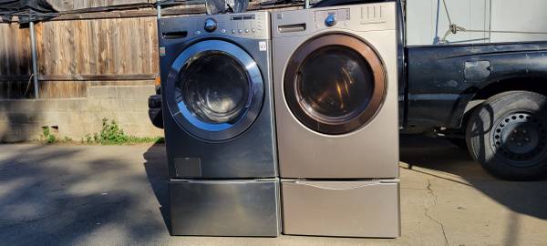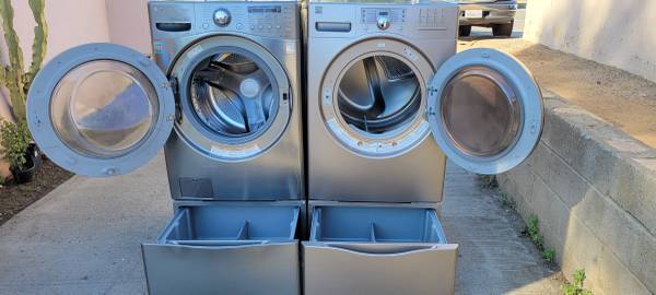 Ultra capacity Heavy duty High efficiency Interior light Stainless Steel drum Very clean inside and out no leaks or weird smells nothing wrong with them $600 can deliver and install...