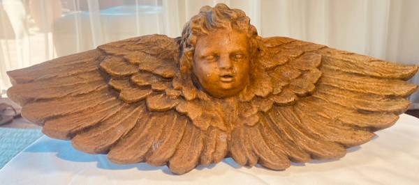 Cherub Concrete Statue with Wings Hanging - Hand Stained and Sealed " All prices are firm" " No offers accepted"