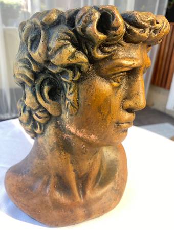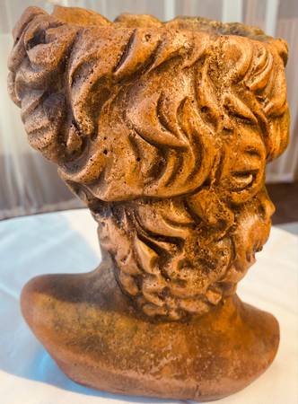 Greek Male Head Stone Sculpture planter $35 " All prices are firm" " No offers will be accepted"