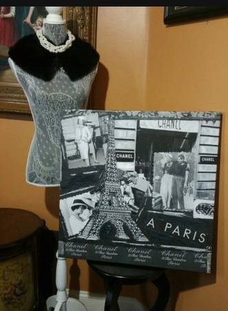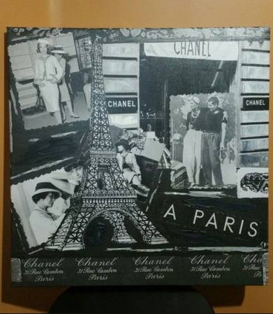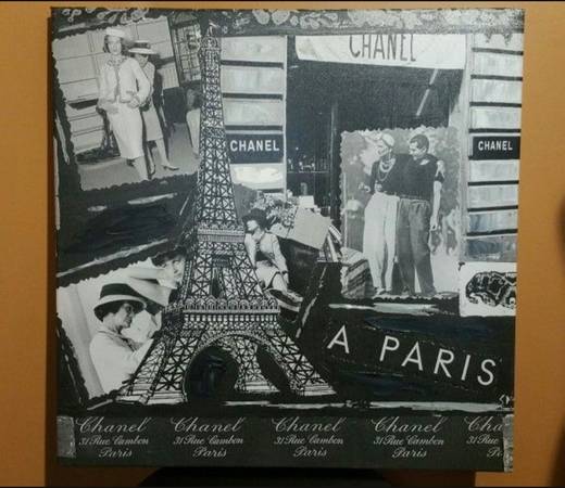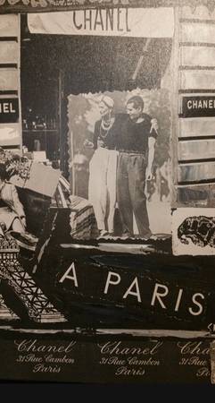 Nice black & white canvas (art, decor). I believe, it has images of Coco Chanel & her boutique in France. This rare piece will add a vintage feel to any interior. Perfect for boutique or...