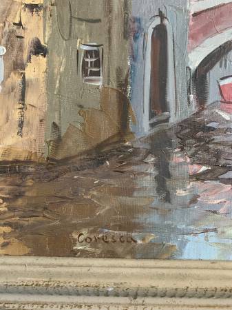 Antique oil painting on canvas, original, Canal of Venice, signed, in a frame. Picture size 16x20 inches, frame 19x23. There is a barely noticeable puncture in the picture, no more than 3/16", the frame is worn in places, but there are no chips. See the photo. In general, the condition is very good. As Is.