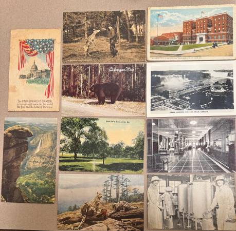 Great lot of vintage postcards, all American themed. Lot of 135.