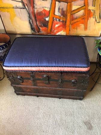 Antique mahogany Trunk.19 1/2 X 34 inches X 17. Excellent condition. $400 or best offer.contact Jane. Manufactured in early 1900s