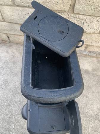 Antique cast iron stove has been used as decor in our home for over 50 years. 25" long, 16" wide, 20" high. $150.