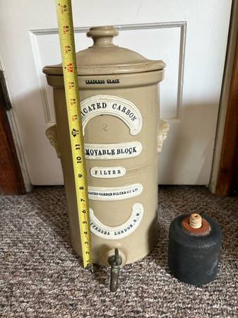 Beautiful stoneware silicates carbon water filter . 9” wide by 18” tall. Excellent condition