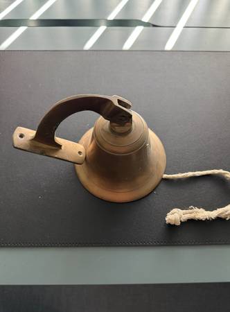 The roommate is selling this heavy-duty metal bell. Not entire sure what it is made out of, could be brass or bronze as it is not magnetic. In great condition, it is a little dusty and could use a good cleaning, but other than that, ready for you to use or give as a gift. The rough measurements are: Roughly 4 1/2 inches tall X 5 1/2 inches wide. The wall mount is 4 inches tall and 4 1/2 inches in depth from the wall. She is moving out of state to AZ and needs every dollar she can get, so it is all yours. Coming from a pet free and smoke free home! You can come pick it up this week! Sorry, my camera skills are not the best.