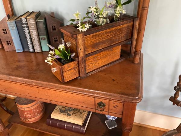Antique Sewing Cabinet Drawers Repurposed into a Planter / Storage Box for sale. This piece was made from the parts of a rescued antique seeing machine cabinet. Fun to use as a planter box or for displaying other items (see pictures).