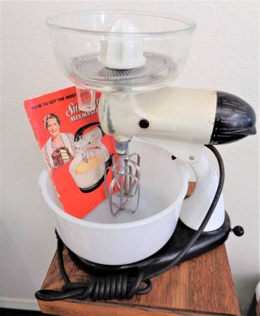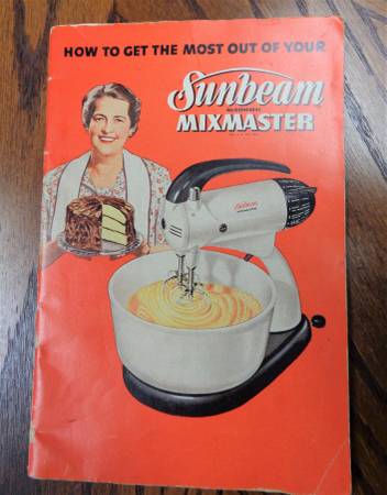 Vintage Sunbeam Mixmaster with all attachments and booklet. Good working condition! In the family since new.