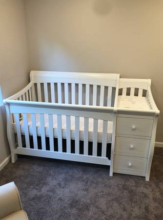 Baby Crib w/ changing station/drawers. Has a few scratches on the bottom.