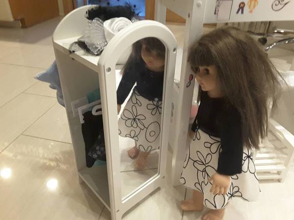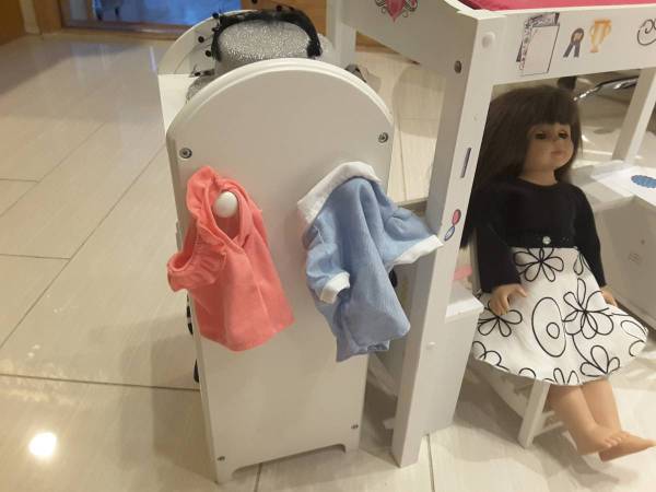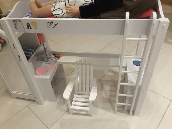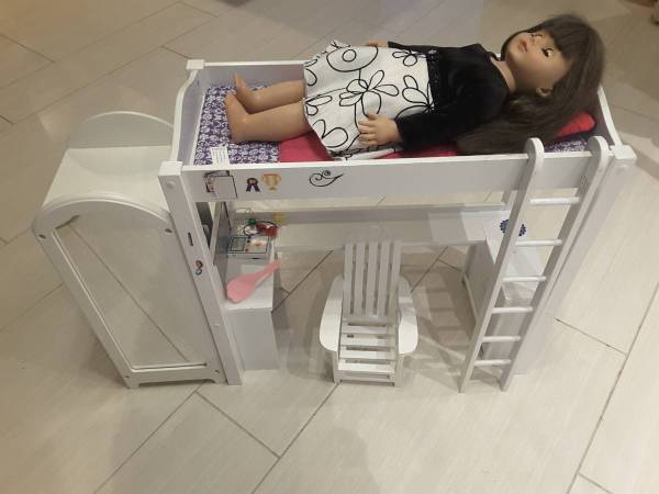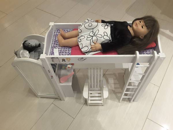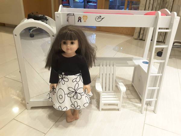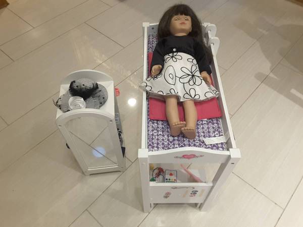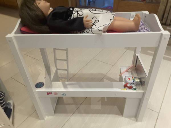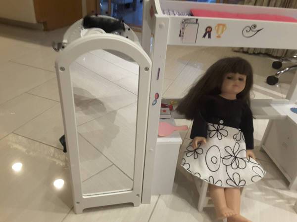 White bedroom funiture set with closet and My life doll 18" and all see in picture sale for $70