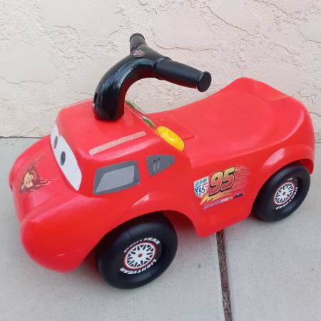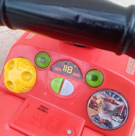 This Ride On Toy Car (20"x 10"x 13"H) is clean and in good working condition. Steer wheel and press to hear rewarding fun sounds and music with flashing lights. 2 Duracell Quantum AA batteries are included. $35