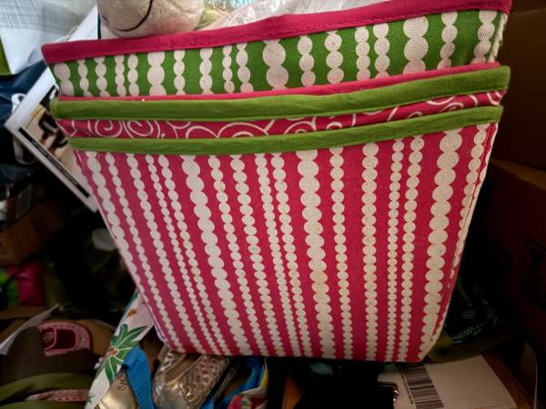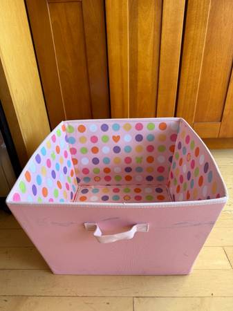 Have about 5 large containers for storage, toys, kids room… Picture is of pink one - have 2 like this 3 more that are different and a little smaller thank the pink ones $2 each.. take them all for...