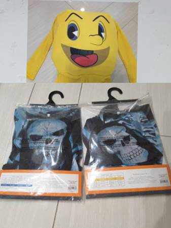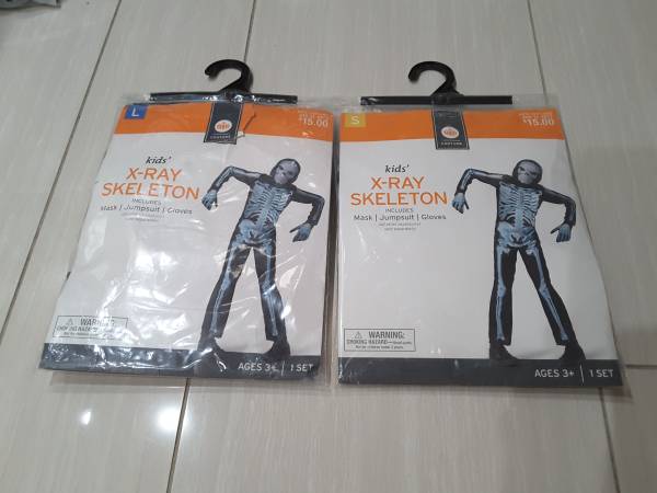 Halloween custom XRay Skeleton set size L and size S for kids like new in perfect condition. Sale for $8/ each set The yellow enjoy face costume for children size M ( 8- 10 ) in good condition. Sale...
