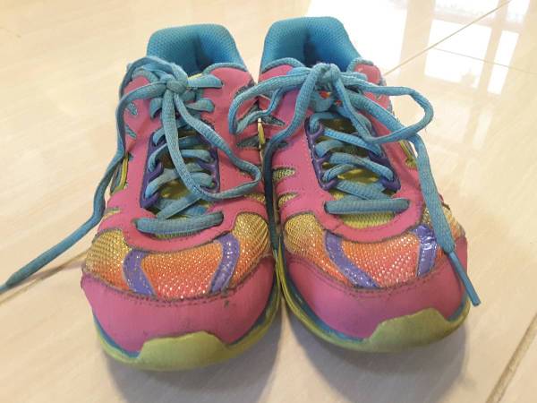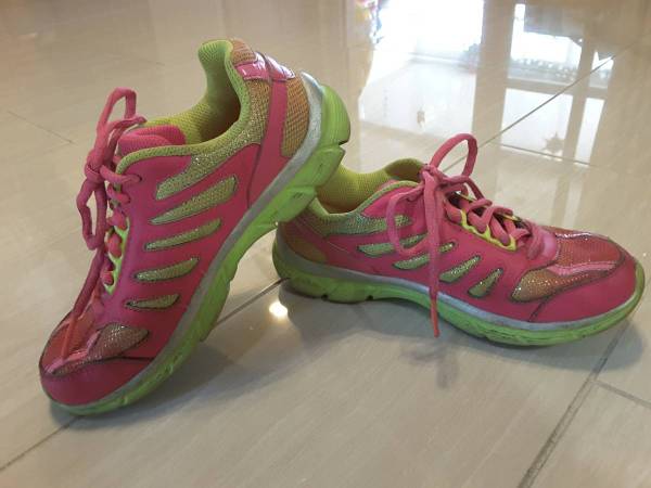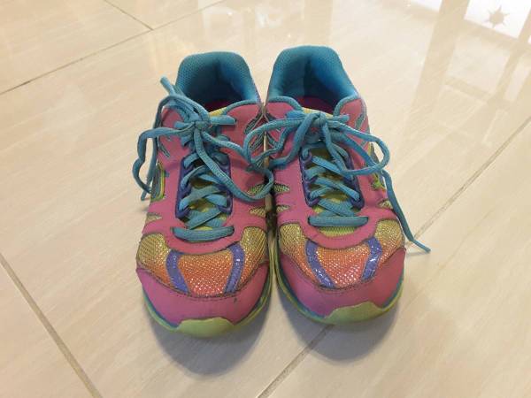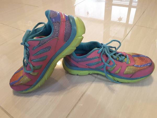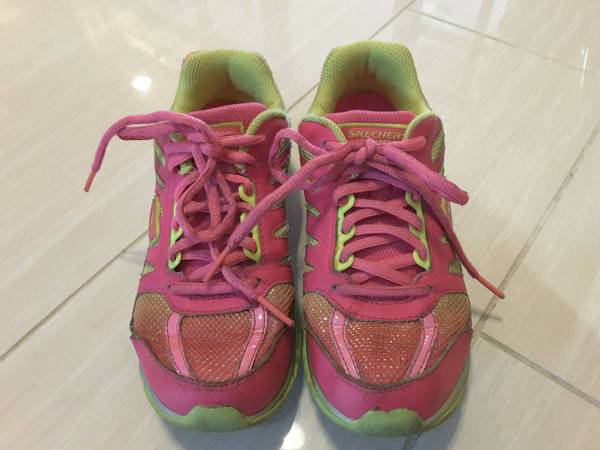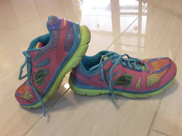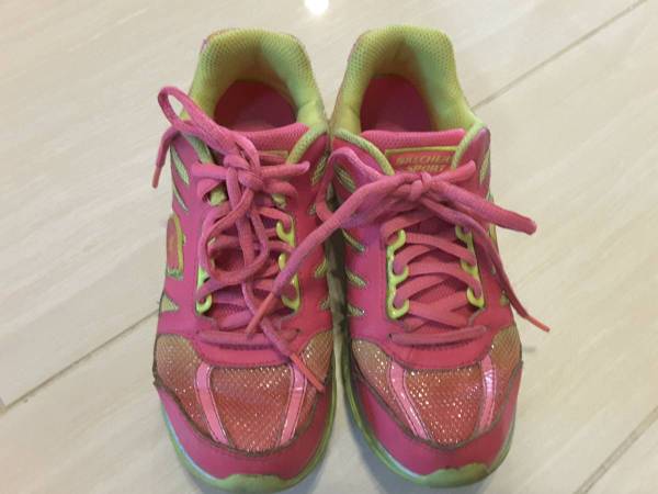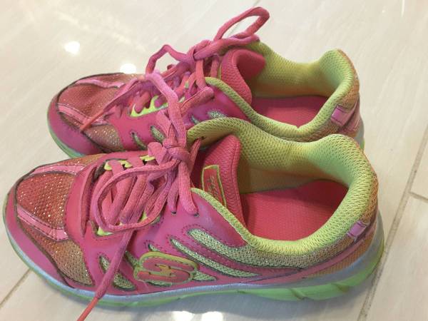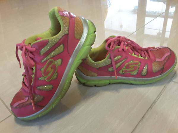 All the shoes in good condition, sale 3 pair for $20 1 Skechers shoes pink and green size 2 2 Skechers shoes pink ,and blue size 2 3 Cherokee black dress shoes size 2 If you like them, send email...