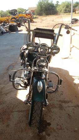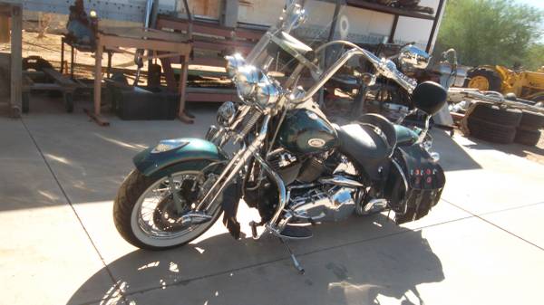 bike is in phoenix, az. i just got a 2000 harley springer motorcycle in a trade. so don't know much about it. it has 14000 miles on it and looks brand new. 1450cc motor, carbureted, 5spd trans, ape hanger bars, bags, springer front end and lots of chrome. health won't let me ride so i'm looking to get rid of it. asking $10000 obo or trade for ????? no free test rides. if you are interested...TEXT show contact info