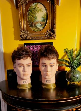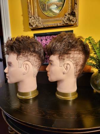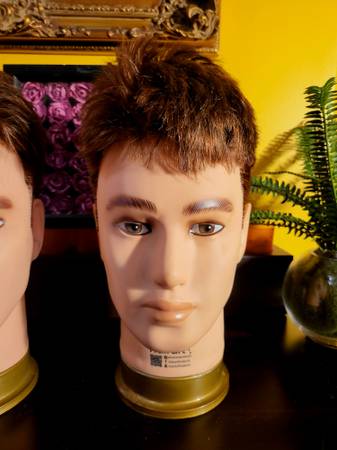 Male mannequin heads for sale. $30 each. Hair is very soft, probably human hair. Height is around 12.5 inches tall. Great mannequins to display hats or other accessories. (Hats are not included but...
