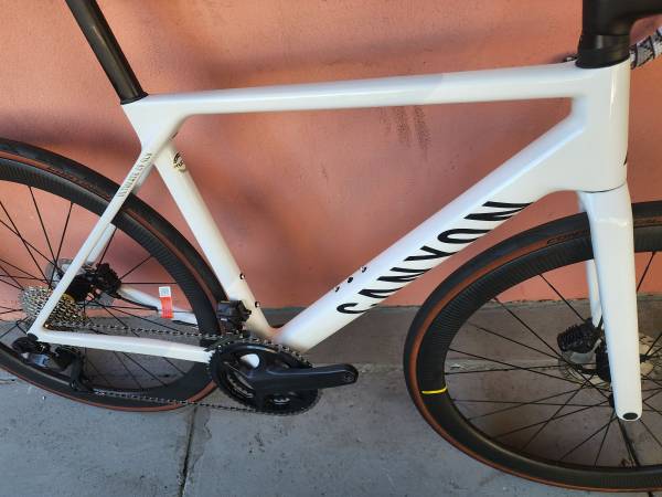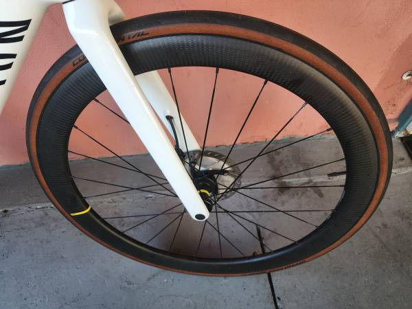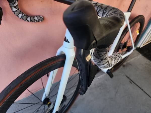 Size medium. Fully stocked with the original Shimano Ultegra di2 12 speed electronic shifting components and Shimano Ultegra hydraulic disc brakes. Has Mavic Cosmic SL 45 wheelset with Continental 5000 tires that are brand new. The overall bike has about 300 miles on it beautiful condition as you can see in the photos. Very very sweet setup. It also has to upgraded one piece handlebar on it . Have original receipt of course. Paid over $6,500 for it 5 months ago. Just moved on to another bike and I have to sell this one.