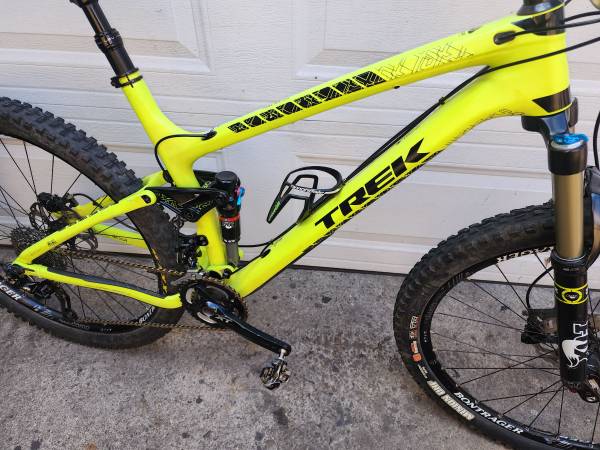 Size medium large 18.5 in carbon frame. Excellent condition as you can see in the photos. Always stored inside. Shimano XT components and hydraulic disc brakes. Fox suspension front and rear with lockout. Upgraded tubeless tires and upgraded K2 Lev dropper seatpost. This thing is a really nice setup it even has the carbon fiber handlebars and lock on grips etc. It was only used for a couple hundred miles on local trails. Recently professionally tuned up with the fluids and the brand new chain. Originally paid over $3,500 for the bike plus the upgrades.
