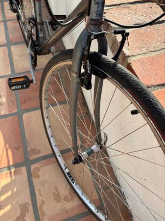 Rides well holds air some rust on handlebars Seat has a slight split Excellent components