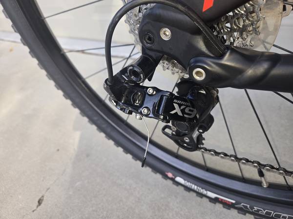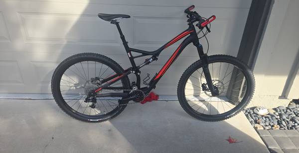Mountain bike specialized Stumpjumper 2015 Comp aluminum frame extra large frame I'd say anybody 5ft 9in. and up could ride this Frame easily because the frame has a low standover height...the bike is like new you can see from the original tires the lack of marks on the crank arms and the like new condition of the chain that it was almost not used for 10 years rear rear shock is a float ctd Evolution series front fork is a rock shock revelation with a lockout knob rear derailleur is X9 SRAM front shifters are SRAM X7 Brakes are shimano Deore hydraulic..braking and shifting are ready..no tune up needed..it is ready to ride it also has a dropper post the specialized proprietary command post IR which actually is an air post which is pretty cool this platform is a 2x10 in 2015 it was the sexiest shifting platform available most bikes are now a one by system..some might say that the two by shifting system is better than the one by because it allows for a wider range of gears more options for low uphill gears..more big gears for fasr downhill or cyclecross type riding..shift to large sprocket and leave your friends behind!! I bought it 2 months ago for a thousand bucks..and since then my plans have changed so I'm going to let it go for 900 bucks if you ask chat GPT about this bike it will say it has top-end value of 1200 it is in like new condition minor scratches ridden less than 100 Mi original tires on it show how little it was ridden..it's a fantastic cross country platform good for Lake Hodges Noble Canyon Santee Trails wherever you want to go