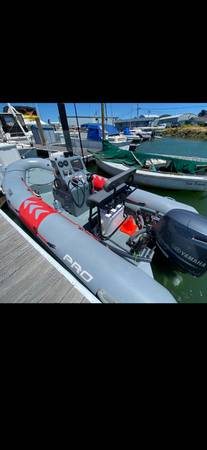 Get on the water with confidence in this 2016 Zodiac Pro 550 (17 ft) Rigid Inflatable Boat (RIB), powered by a reliable and freshly overhauled 90HP Yamaha 4-stroke outboard.