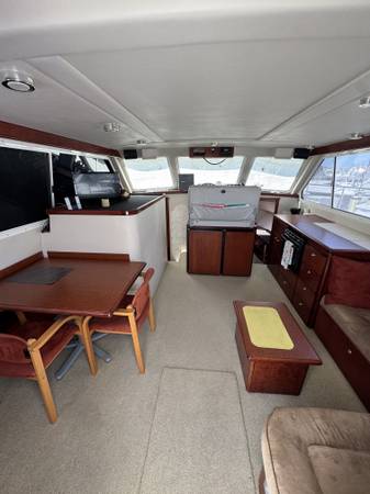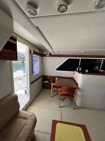 The 2001 Zeta 32 Power Catamaran is a well-regarded, stable, and fuel-efficient power catamaran known for its spacious layout and comfortable cruising capabilities, often praised for its performance in rough seas