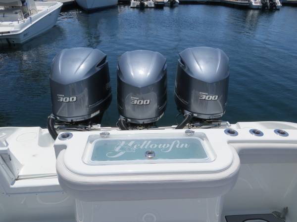 Nice 2017 Yellowfin 36 CC boat for sale in San Diego. Powered by triple Yamaha F300 motors with around 1,440 hours. Extensive Electronics package with dual Simrad NSS16 displays, Simrad open ray Radar, Simrad autopilot, Flir Camera, Icom VHF radio, and Fusion stereo. Many recent upgrades including SeaDek flooring, Custom Canvas covers, Sea Chest, spotting Tower, and more. All pictures are of the Actual Boat. A matching AmeraTrail Aluminum Trailer is Included. Please inquire with any questions.