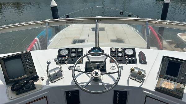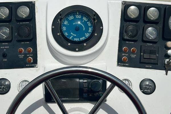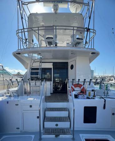 Perfect for coastal cruiser, long range offshore fishing, condo on the water or liveaboard. 3 control stations, good electronics, A/C, 2 staterooms 2 heads plus day head on Cal deck, new stereo system, flat screen, freshly painted LP hull and superstructure, new bottom paint, new carpet (over hardwood), new upholstery, upgraded galley with new cooktop...and more!