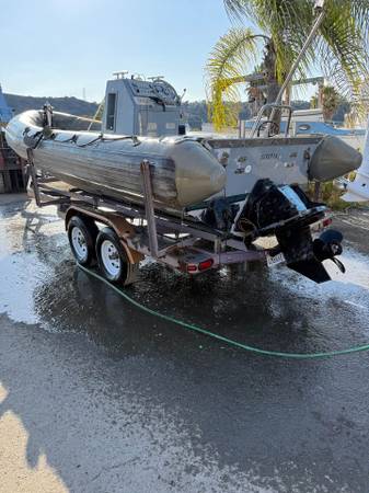 Willard navy boat with trailer. 5.9 Cummins removed, konrad drive still attached. W tandem Axle steel trailer