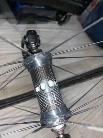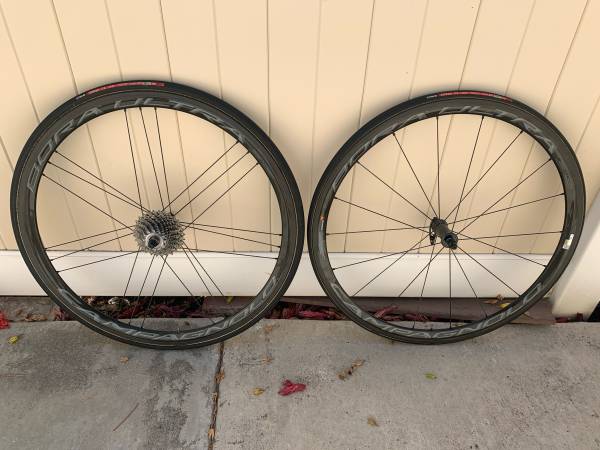 Rear wheel has a Campy freehub body with a Campag 11-28 11 spd cassette. This cassette has only been ridden a few miles. Included in sale.