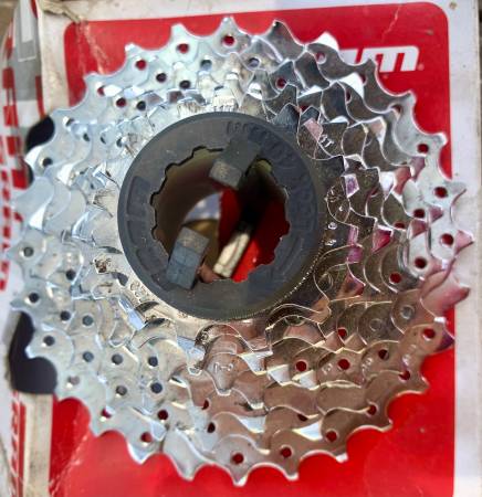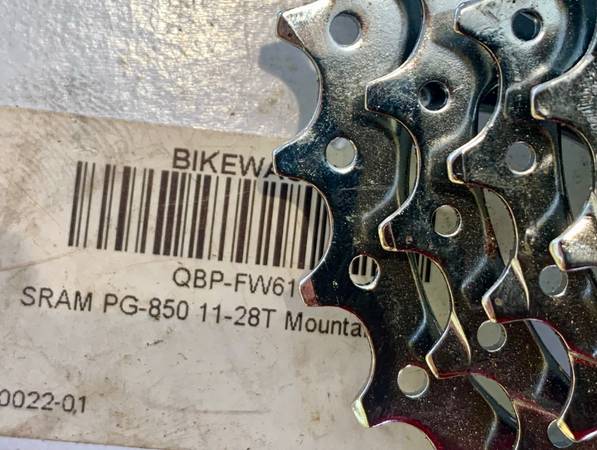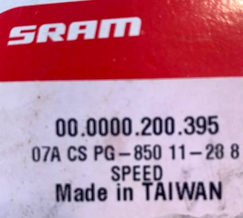 For sale is a SRAM PG-850 8 Speed Cassette - Silver 11-28t. It has never been used or mounted, and is still in its plastic core. The original box is included (has shelf wear).